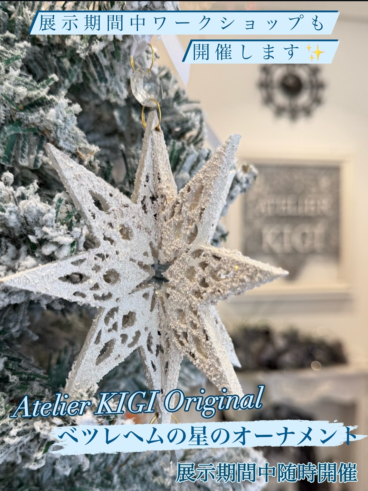 AtelierKIGIならではのムニュムニュをふんだんに取り入れたスターオーナメントや、石鹸彫刻(カービング)、フラワーアレンジメントなどどれもとっても素敵なデザインです✨